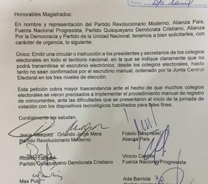 Santo Domingo Seis partidos de la oposición solicitaron esta tarde a la Junta Central Electoral (JCE) instruir a los presidentes y secretarios de los colegios...