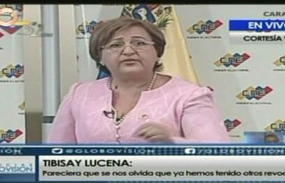 Tibisay Lucena inicia alocución sobre el referéndum revocatorio