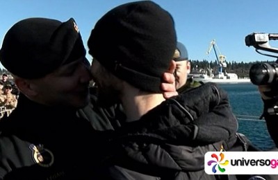 Hermoso beso de bienvenida de un marino de Canadá por parte de su novio