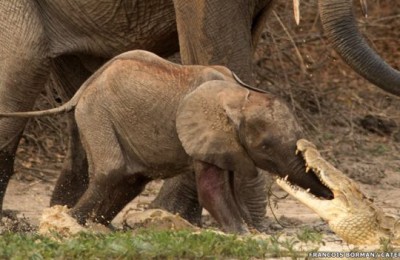 Este bebé elefante escapó después de haber librado una batalla con un cocodrilo hambriento. La lucha cuerpo a cuerpo se produjo en Zimbabue. El increíble momento fue...