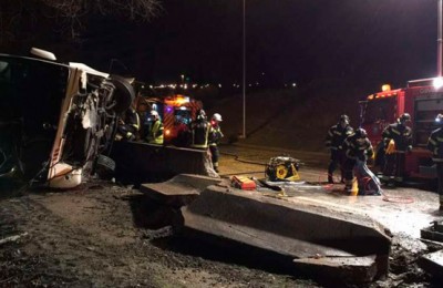 Muere en el acto el conductor de un autocar al volcar en M-506
