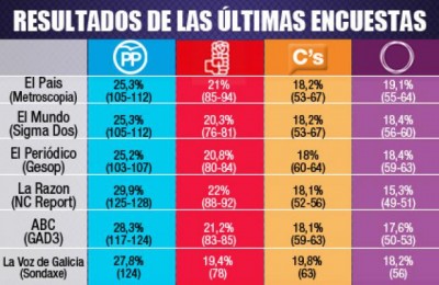 España Todas las encuestas que se han publicado en los últimos días apuntan a un escenario de incertidumbre. El futuro presidente del Gobierno conseguirá el menor...
