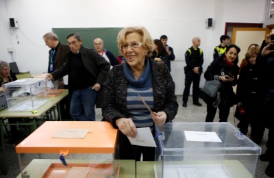 La alcaldesa Carmena, primera de los políticos madrileños en votar