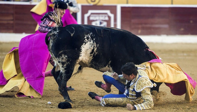 El famoso torero Francisco Rivera Ordóñez ha sufrido una durísima cornada durante su faena en Huesca. El toro de nombre Freidor le dio una fuerte cornada hundiendo el pitón prácticamente entero justo encima de la ingle derecha, sosteniéndolo durante angustiosos segundos en el aire. El torero ha sido trasladado en volandas y está siendo operado de urgencia en la enfermería de la plaza.