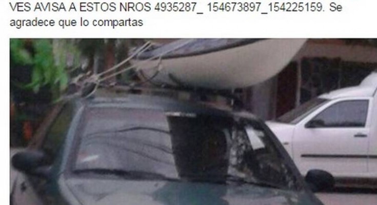 La mujer, identificada como Iris, le avisó a sus familiares y fue el padre de su hijo el que le pidió que le mande una foto del auto para postear el aviso del robo en el Facebook de Proteste Ya Plottier, creado por una organización sin fines de lucro local.