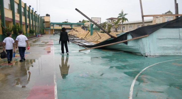 El hecho ocurrió alrededor de las 10:30 de la mañana, debido a las lluvias y vientos que se han sentido el pasado martes en todo el Distrito Nacional, afectando el área de recreación donde los niños toman su tiempo de recreo.